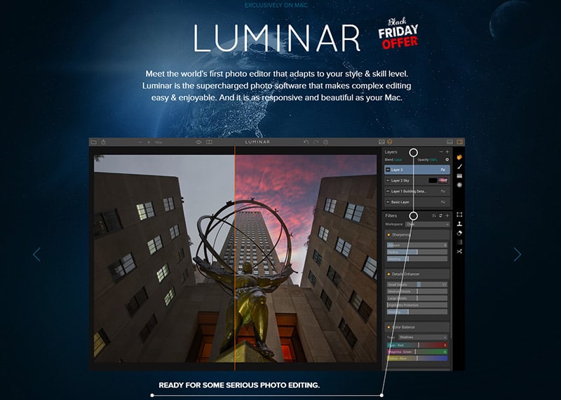 Luminar is a versatile photo editing software made by Skylum (formerly Macphun) that is commonly seen as an alternative to Lightroom. With its adaptable interface, Luminar molds to your style and skill level, allowing you to enhance your photos with ease.